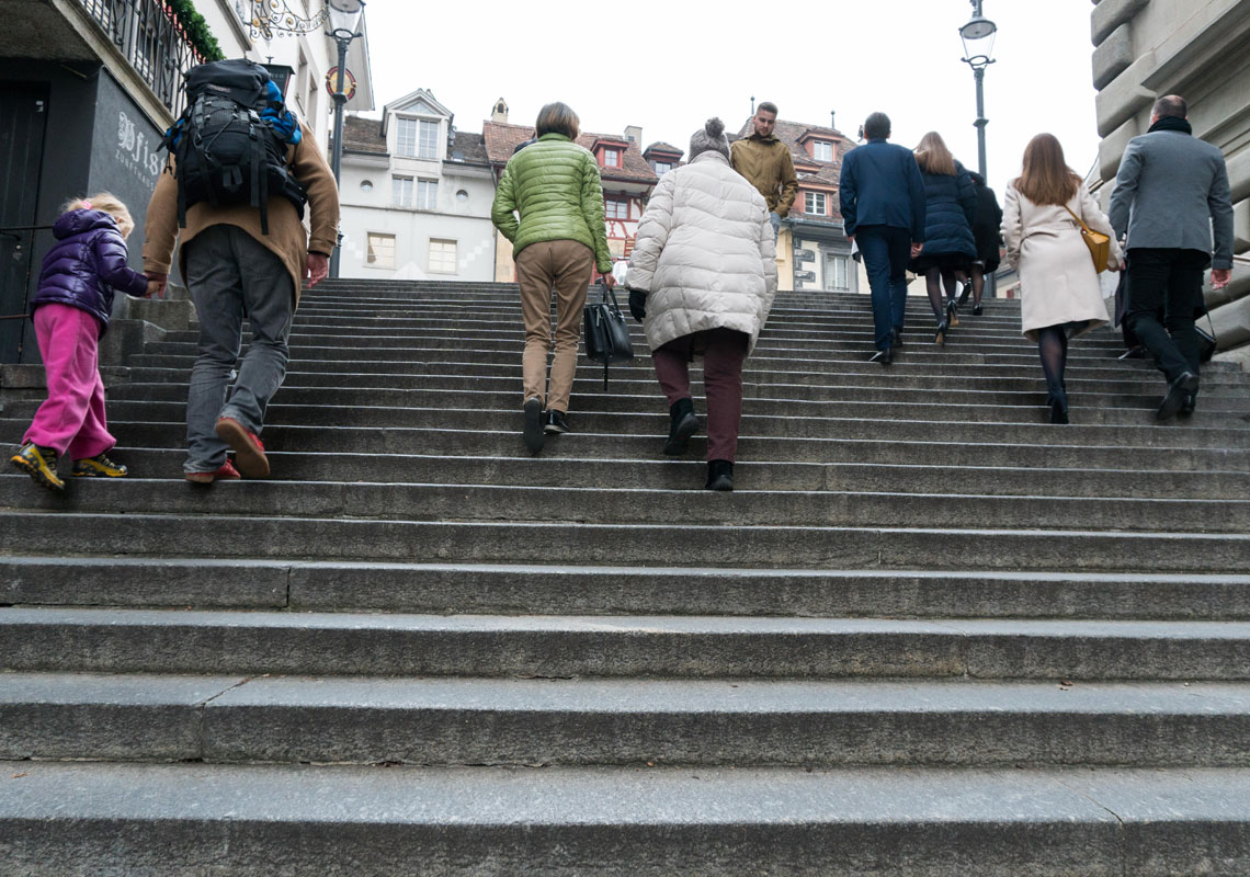 Wer zu Fuss unterwegs ist, tut etwas fürs Klima und für die Gesundheit. Zu Fuss kann man zum «Schrittsammler» werden. Das ist eine zusätzliche Motivation, auf das Auto zu verzichten um die magische Zahl von 10’000 Schritten am Tag zu erreichen. Schrittzähler können heute viel mehr als nur Schritte zählen. Sie zeichnen auch die Gehstrecke, Gehdistanz oder das Schritttempo auf. Zu Fuss lässt sich auch die Stadt entdecken: auf einer Stadtführung oder etwas sportlicher am Stadtlauf.